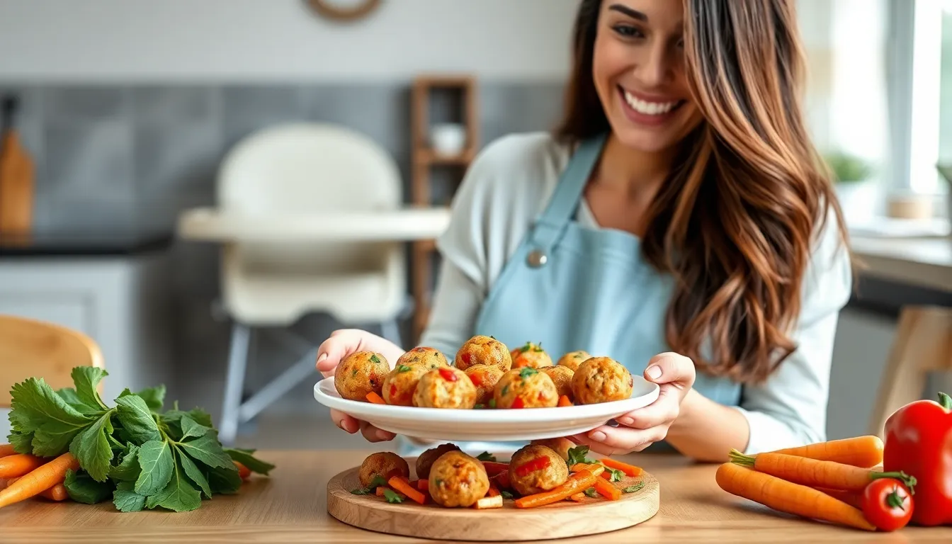 Meats such as chicken, turkey, or beef provide essential proteins. Vegetables like spinach, carrots, and sweet potatoes add vitamins and minerals. Whole grains, including quinoa or brown rice, enhance fiber content. Opt for finely chopped veggies to prevent choking hazards. Adding herbs and mild spices can introduce flavors without overwhelming babies’ palates. Always ensure that ingredients are fresh and age-appropriate. Parents should avoid processed items high in sodium or sugar. Keeping portions in mind, aim for meatballs roughly the size of an adult’s thumb for easy handling.